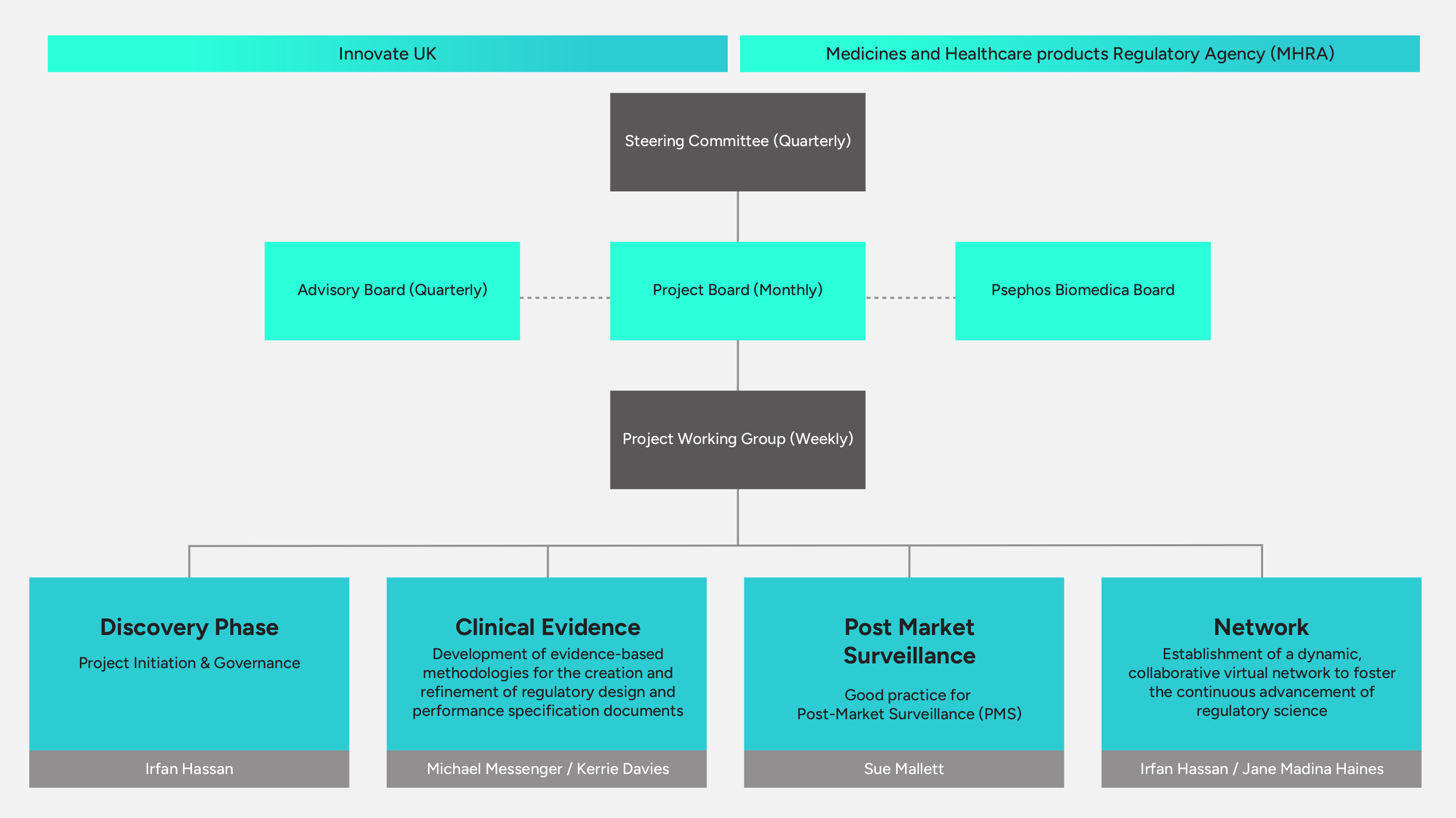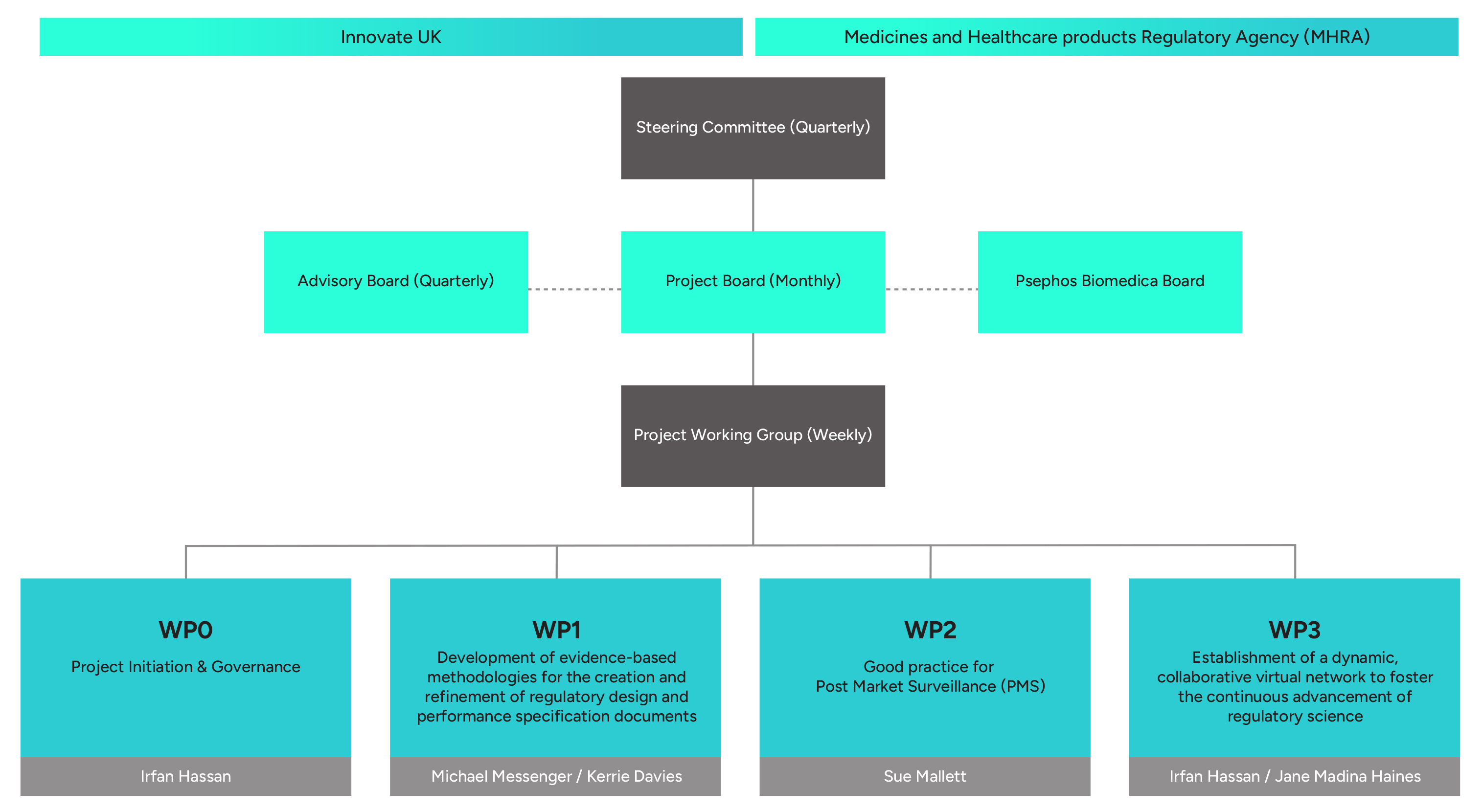 ​Regular meetings of the Project Board, Steering Committee, and Advisory Board provide continuous oversight, proactive risk management, and evidence-based decision-making. Robust communication strategies keep all partners and stakeholders aligned, while detailed reporting ensures full compliance with Innovate UK monitoring requirements.